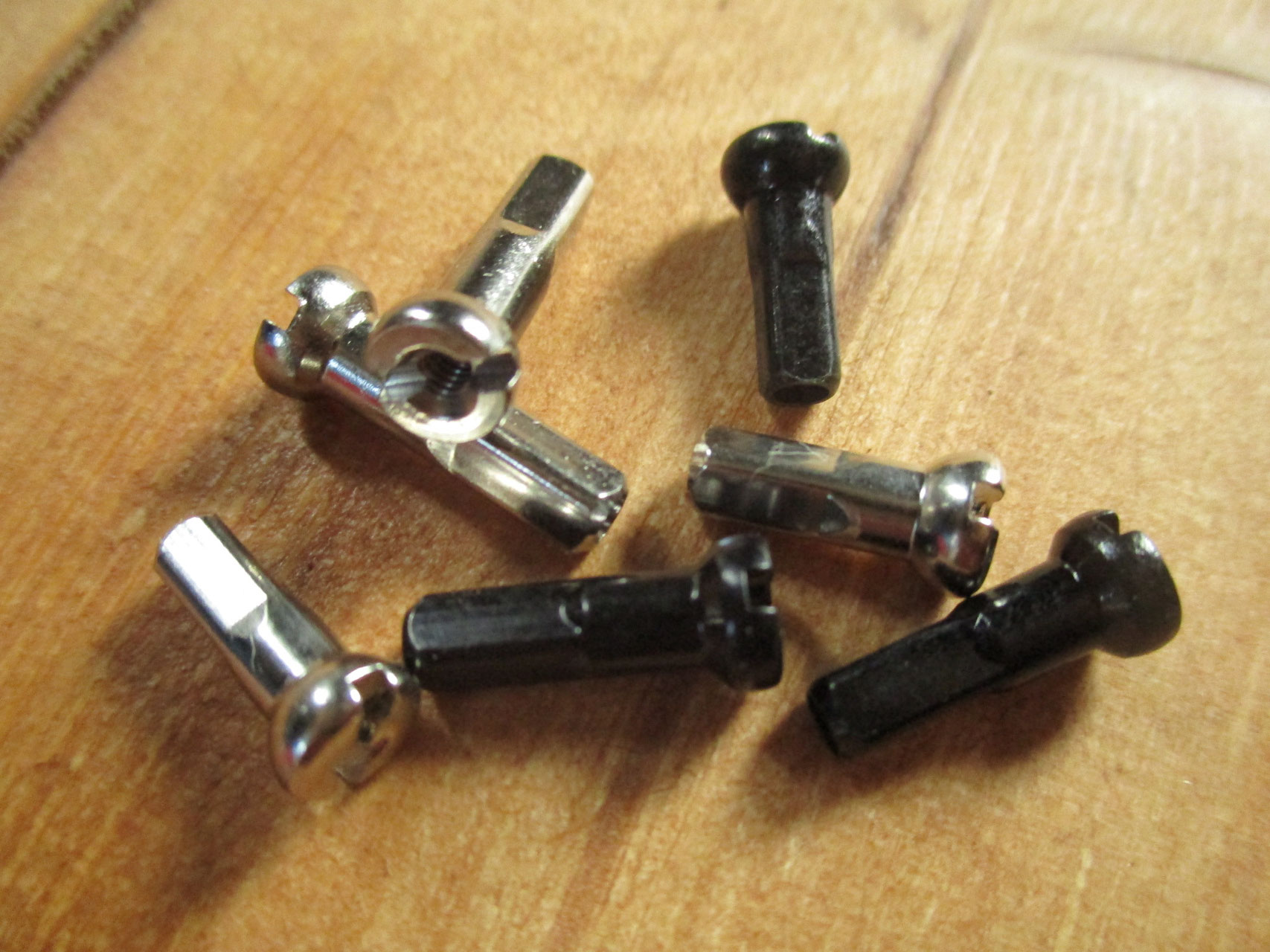 Die 14x2,3mm Nippel sind für ein größeres Felgenloch (ca. 5,5mm)